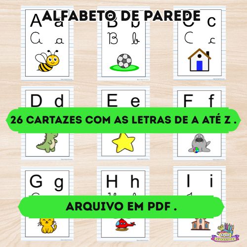 Transforme sua sala de aula em um ambiente alfabetizador, colorido e estimulante com o Alfabeto de Parede em PDF pronto para impressão! Ideal para Educação Infantil e Anos Iniciais do Ensino Fundamental, esse material foi criado para facilitar o processo de alfabetização e apoiar o aprendizado diário das crianças.