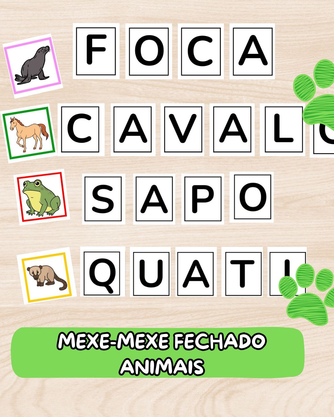 Letras com a imagem de apoio para formar palavras, promovendo a reflexão sobre a correta organização das letras.