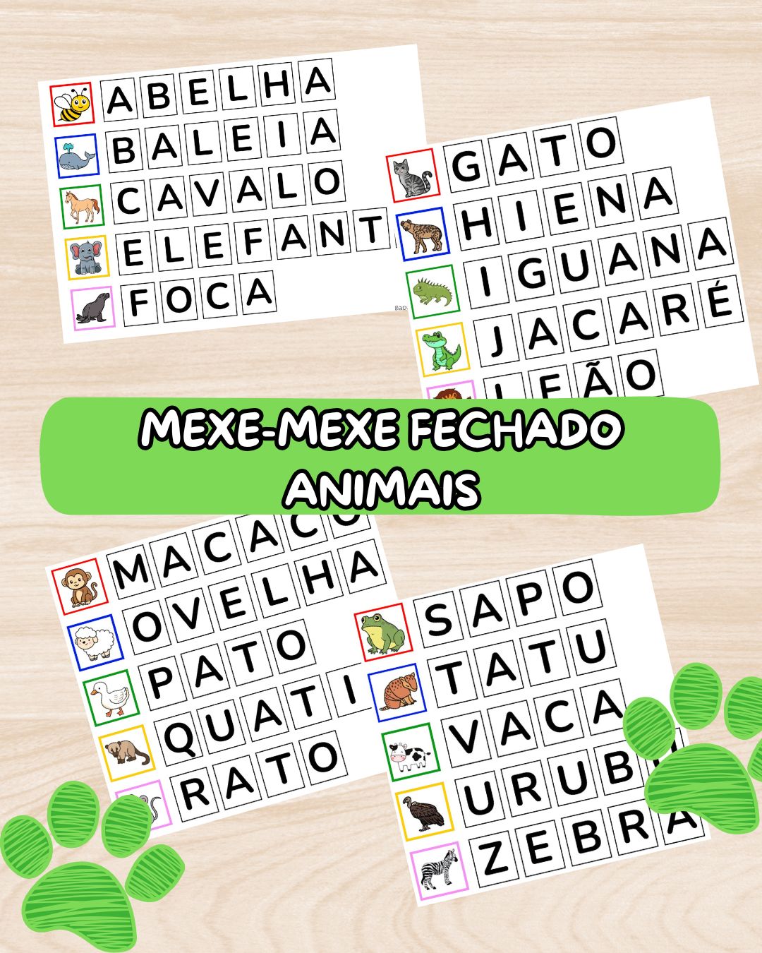 20 palavras para formar o Nome de Animais.