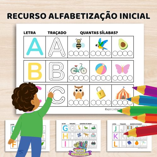 Trabalhando o alfabeto e a consciência de sílabas, ideal para alunos em fase inicial da alfabetização.